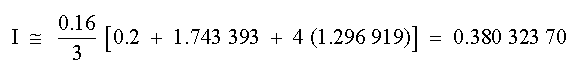 EJEMPLO 3Utilícese la regla de Simpson de 3/8 para calcular la integral anterior: SOLUCIÓNComo se requieren cuatro puntos o tres fajas para la regla de Simpson de 3/8, entonces: